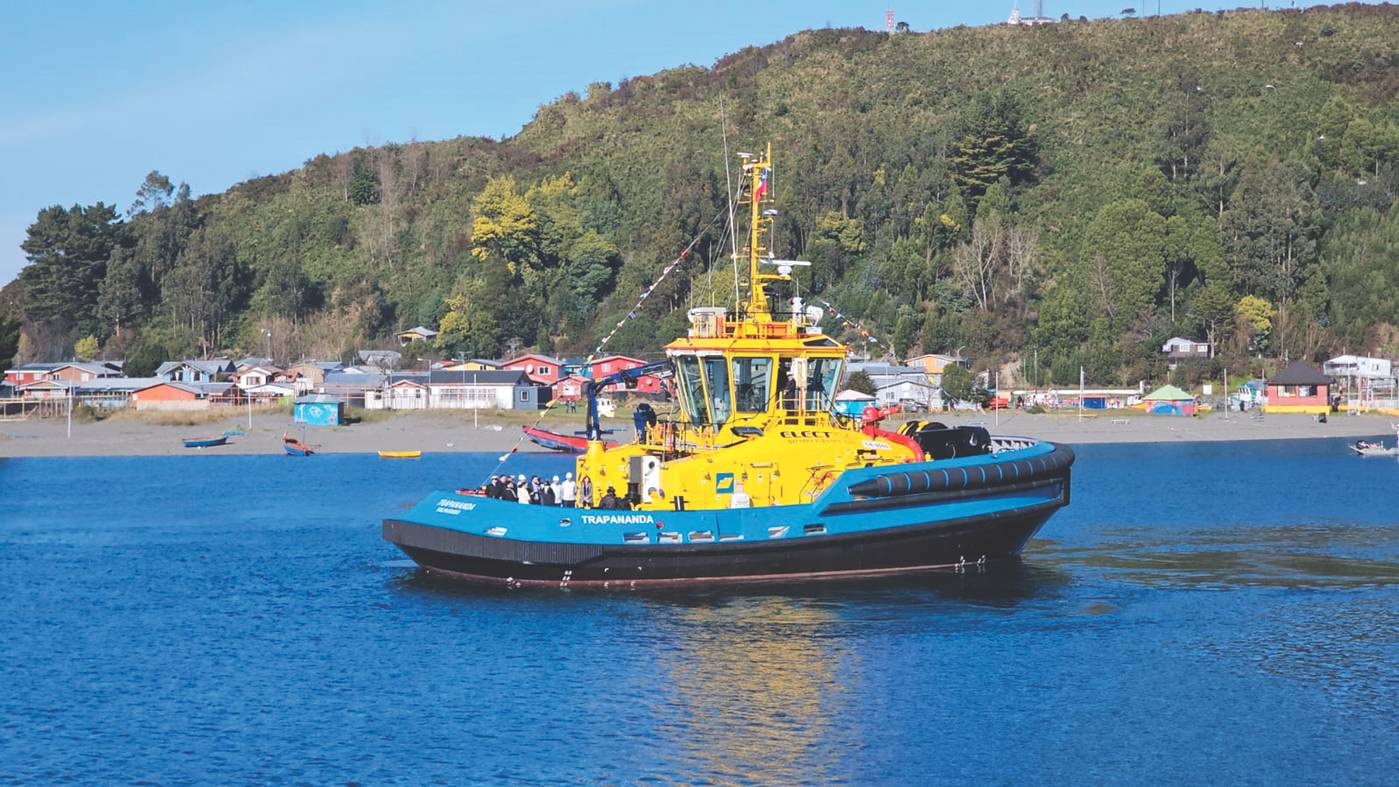 SAAM christened Trapananda, reported to be the first electric tugboat in Latin America. Thanks to a strategic partnership with Enap, the electric tug will operate in one of the southernmost terminals in the world, Puerto Chacabuco, in the Aysén Region, supporting ship berthing and deberthing operations.