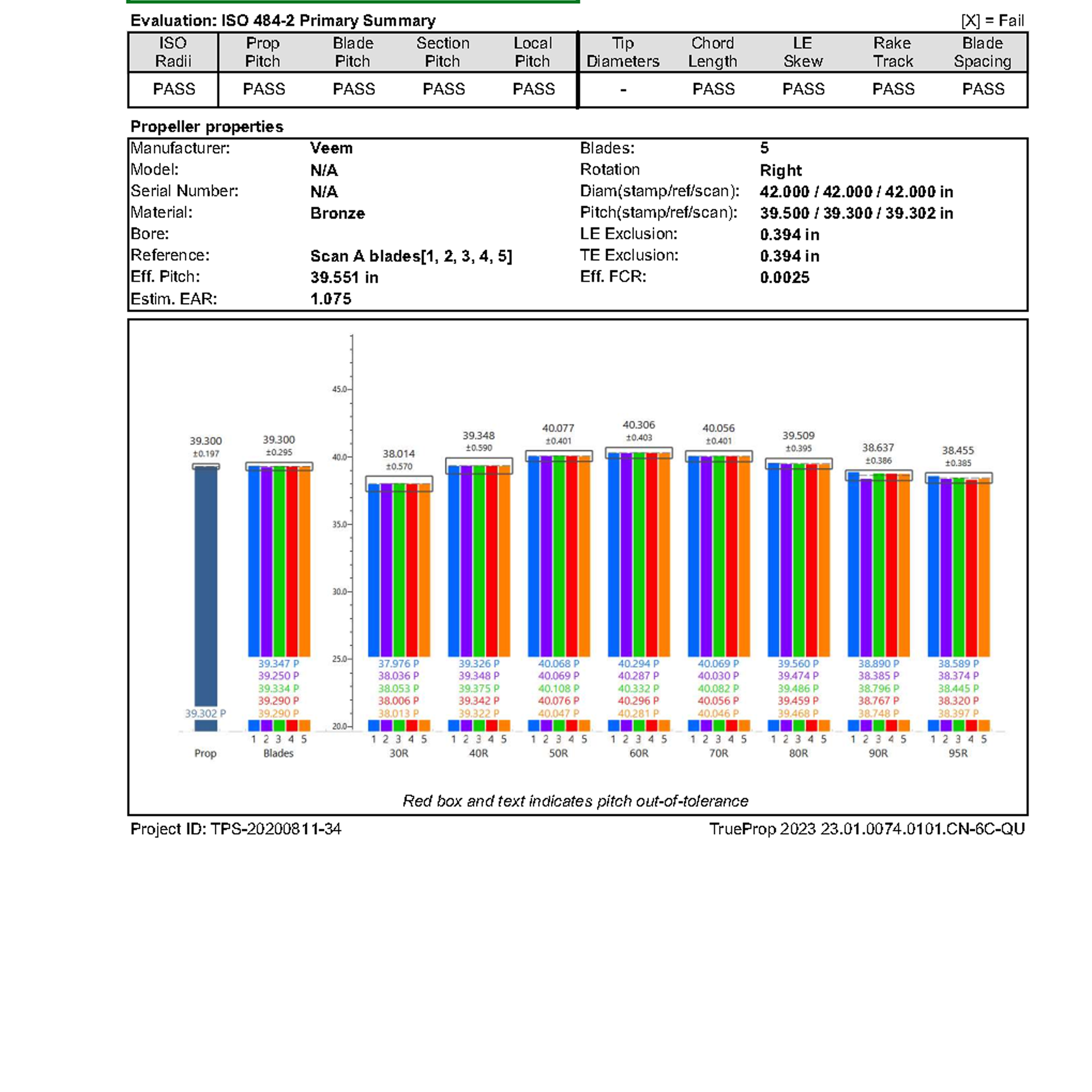 Scans produce precise, repeatable measurements of every blade. Reports mirror the “before and after” alignment printouts familiar in the automotive world—providing shipowners proof of work and a digital record for future reference. Digital archives support warranty claims, accident investigations, and future replacements.