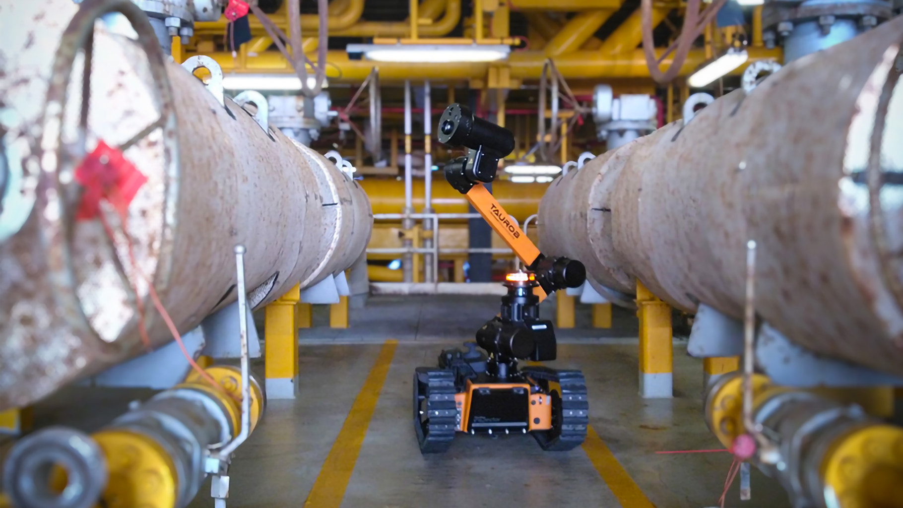 Together with industry partners Taurob has been working on an offshore work class robot – the Taurob Operator, a new robot that is capable of performing heavy-duty tasks offshore. “The overall idea is to have robots take over more tasks and reduce the footprint of oil and gas platforms, making them leaner, less complex and effectively reduce the number of people on-site,” says Matthias Biegl, Managing Director of Taurob.